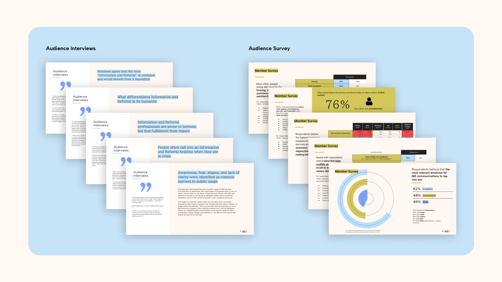 Our strategy began with listening. We conducted leadership interviews with Inform USA board members and staff. We also surveyed more than 550 sector professionals, completing one-on-one interviews and site visits with I&R providers across the country. Our goal was to understand how professionals viewed their own work and how the public perceived (or misunderstood) it.